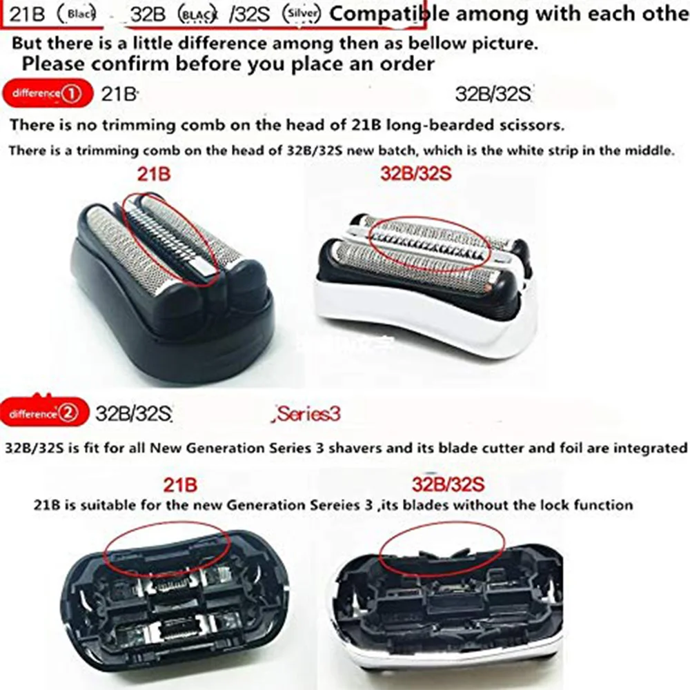 HIGH QUALITY 21B Shaver Replacement Part for Braun Black Compatible with Models 300s and 310s cruZer5clean cruZe